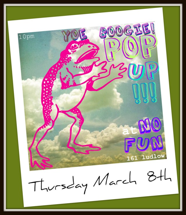 Tonight!! Come through to YOE BOOGIE POP UP!! and get down to the sounds of DJ Valissa Yoe and DirtyBoogie!